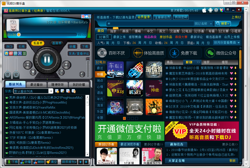这软件实现的原理非常简单,就是把原ku8box所提供的免费DJ音乐网页版的flash功能,基于IE内核控件并打包成了一个exe文件,因此技术含量非常低,花里胡哨的播放器实际上是ku9box所提供的在线服务。